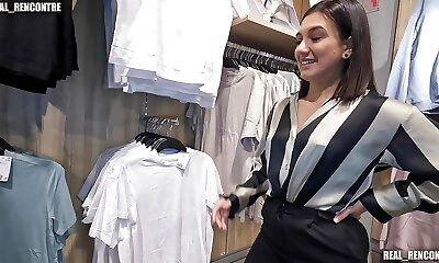 A Pretty French Nymph Gets Ass Fucking Fucked In A Fitting Room By 2 Of Her Brother's Friends