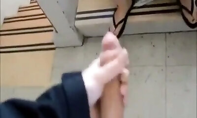 une tarte éhontée me suce profondément dans les escaliers et elle est tellement sans pitié