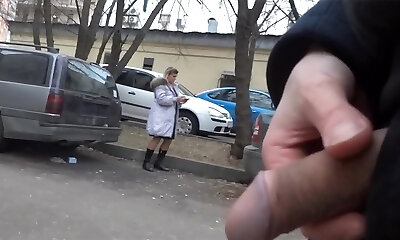 chesty mature exhibitionniste avec tâtonner dans le public