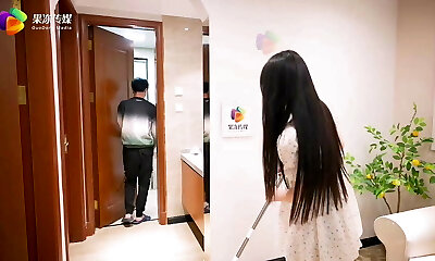 magnifique secrétaire chinoise en bas et hauts talons harcelés lors de son premier jour
