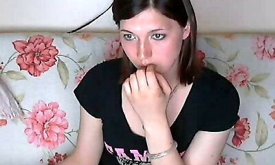 fabuleuse tgirl aux cheveux bruns avec de petites boîtes de lait se masturbe sur cam