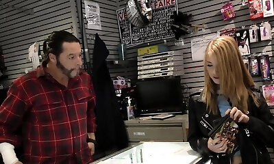 Beautiful and shy Veronica Avluv tries fellating gigantic dick in the gloryhole booth