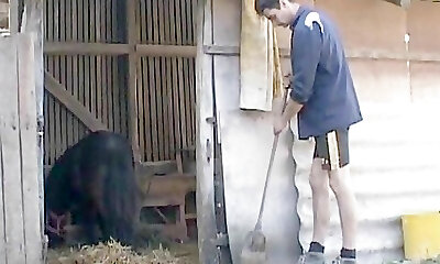Chubby pensioner fucks a Dark-hued guy on a sunny day