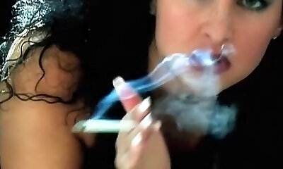 Fabulous smoking video with brunette, couple sequences