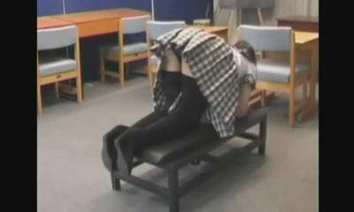 Blonde hottie likes it when a mistress bashes her rump with a stick