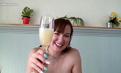 Horny beauty gets jizz stream on her face swallowing all the j