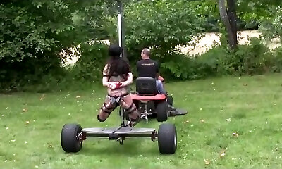 Pounding her with a sex machine and gimps go bananas