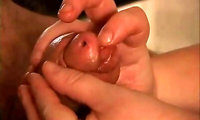 Steamy Paraffin Wax Handjob - Fat Pierced Cock - Prince Albert - Cum out of Piercing!